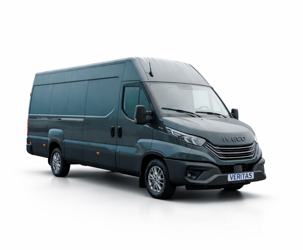 Oferujemy fabrycznie nowy IVECO Daily 35S18HV L4H2 z silnikiem 3.0 o mocy 180 KM, w roku modelowym 2024, z rozstawem osi 4100 mm.